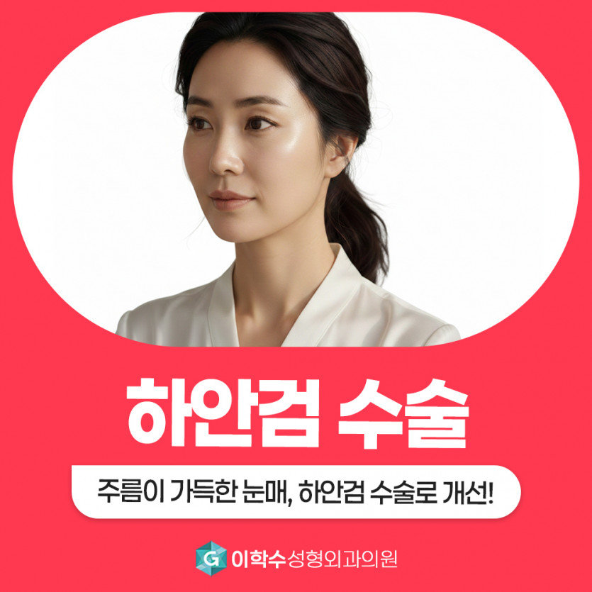 하안검 수술은 아래 눈꺼풀 부위의 노화로 인해 발생한 피부 처짐과 지방 돌출을 조절하여 눈 밑 라인을 보다 정돈된 상태로 개선하는 수술입니다. 개인의 눈 구조와 노화 정도에 따라 수술 계획이 달라지므로 충분한 진단이 중요하죠.