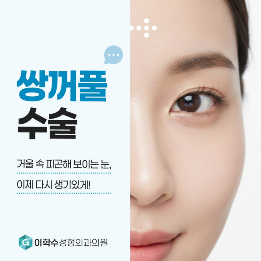이학수성형외과에서는 개개인의 지방 분포를 살펴 절개 위치를 조절하고 인위적인 느낌을 줄이는 데 주력하고 있어요. 작은 창으로도 충분한 조직 정리가 가능해 효율적인 눈매 변화가 가능해요.