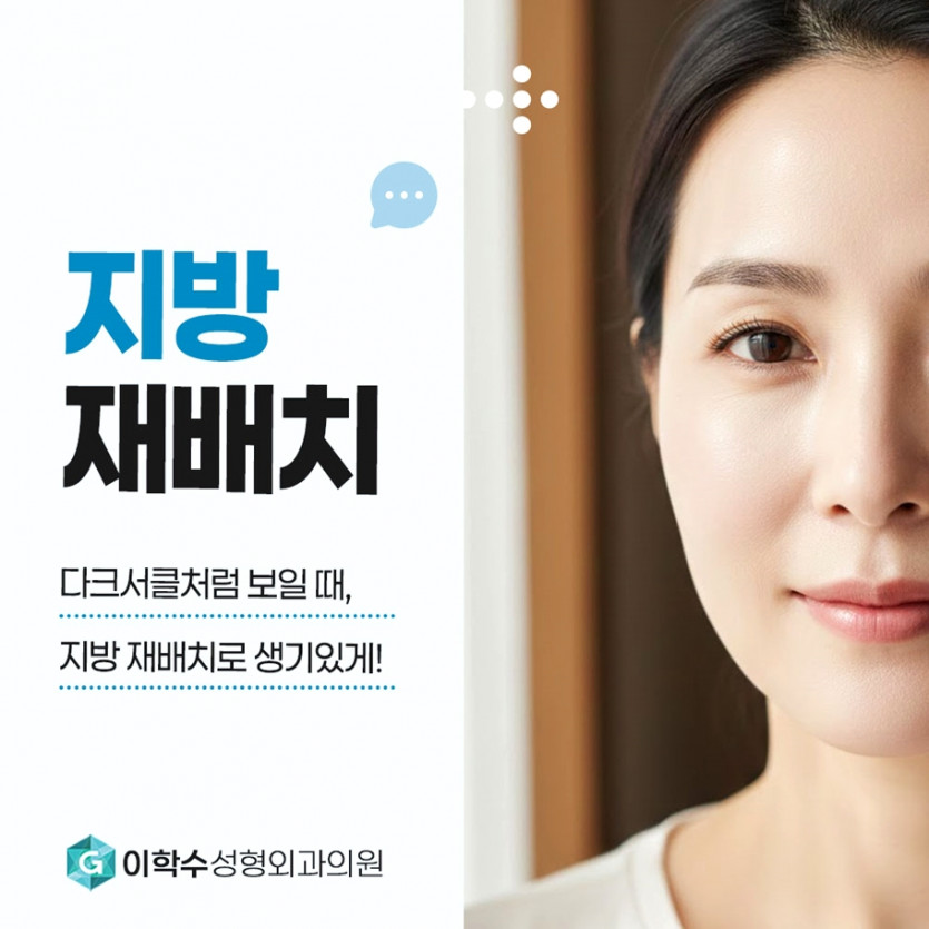 대부분 지방만 제거하고 깊은 고랑을 방치했을 때 오히려 눈 밑이 퀭해 보이는 현상이 심해지거든요. 이학수성형외과에서는 고랑을 만드는 근육의 유착을 풀어주고 그 공간을 지방으로 채우는 방식으로 어두운 면을 없애드리고 있어요.